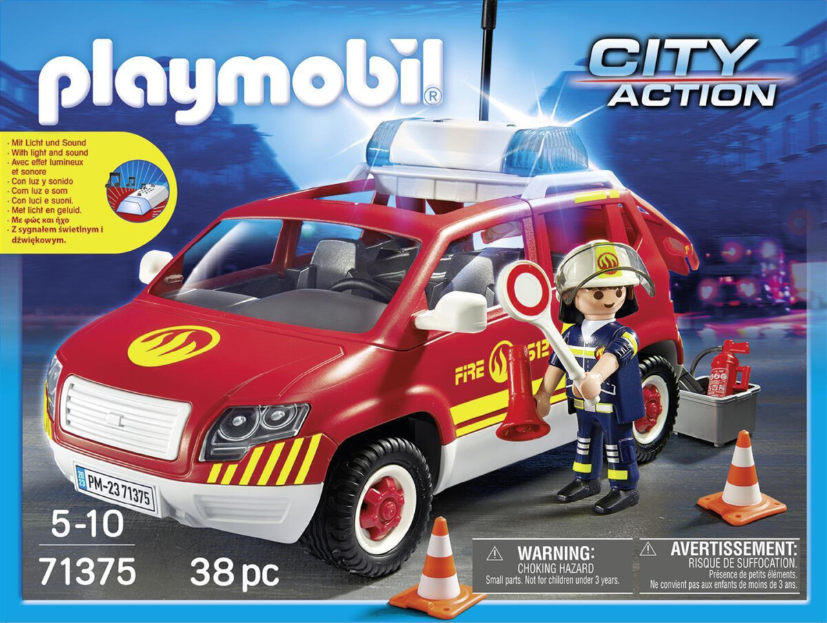 Με φάρο και σειρήνα που λειτουργούν (1 μπαταρία ΑΑΑ-δεν περιλαμβάνεται), έναν πυροσβέστη, δύο κώνους, πυροσβεστήρα και άλλα αξεσουάρ. Η οροφή του οχήματος αφαιρείται.